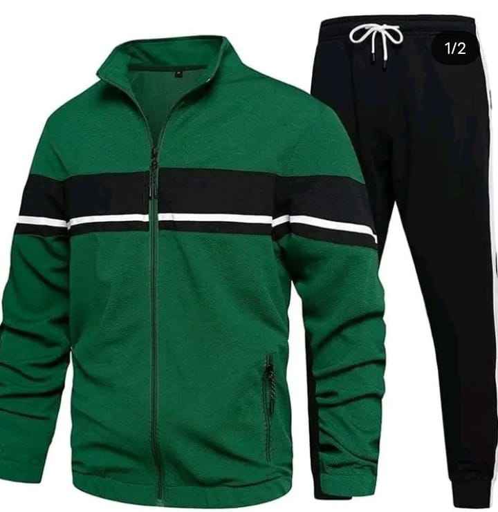 ชุดวอร์มสองชิ้นสำหรับผู้ชายเสื้อแจ็คเก็ตและกางเกงวิ่งแบบลำลองมีซิปดีไซน์ลายทาง OEM และ ODM