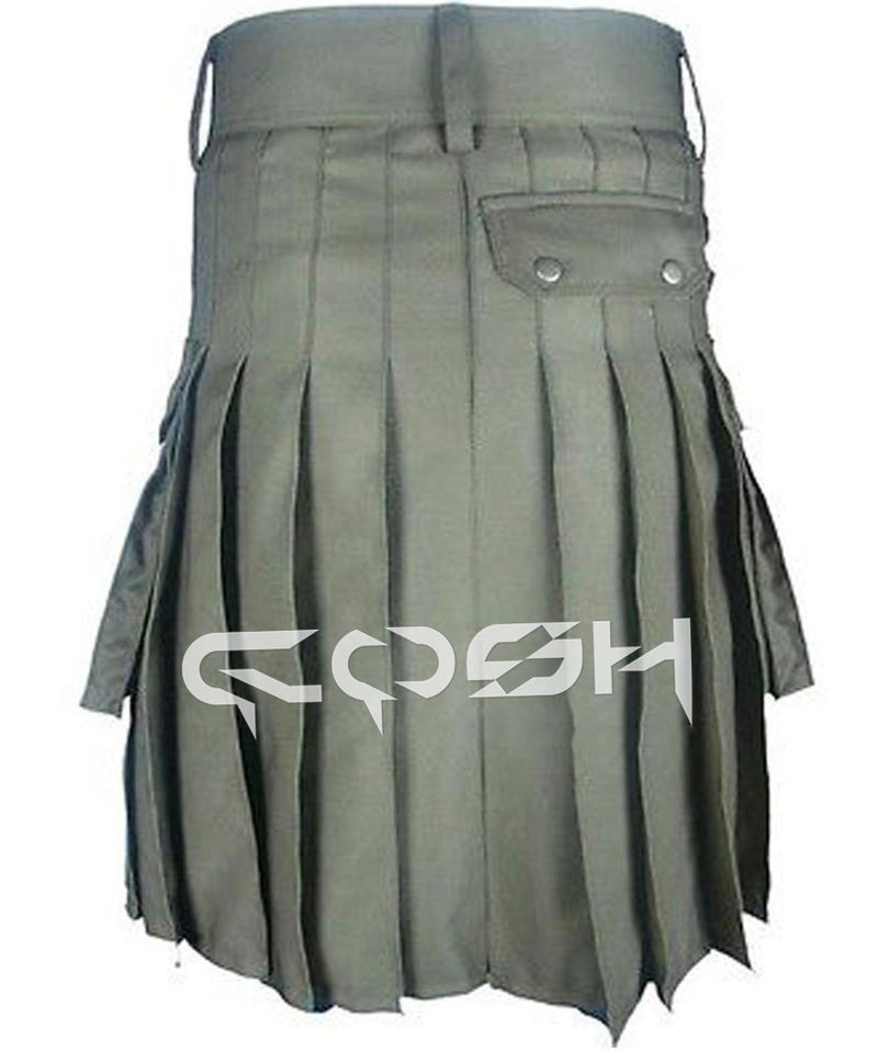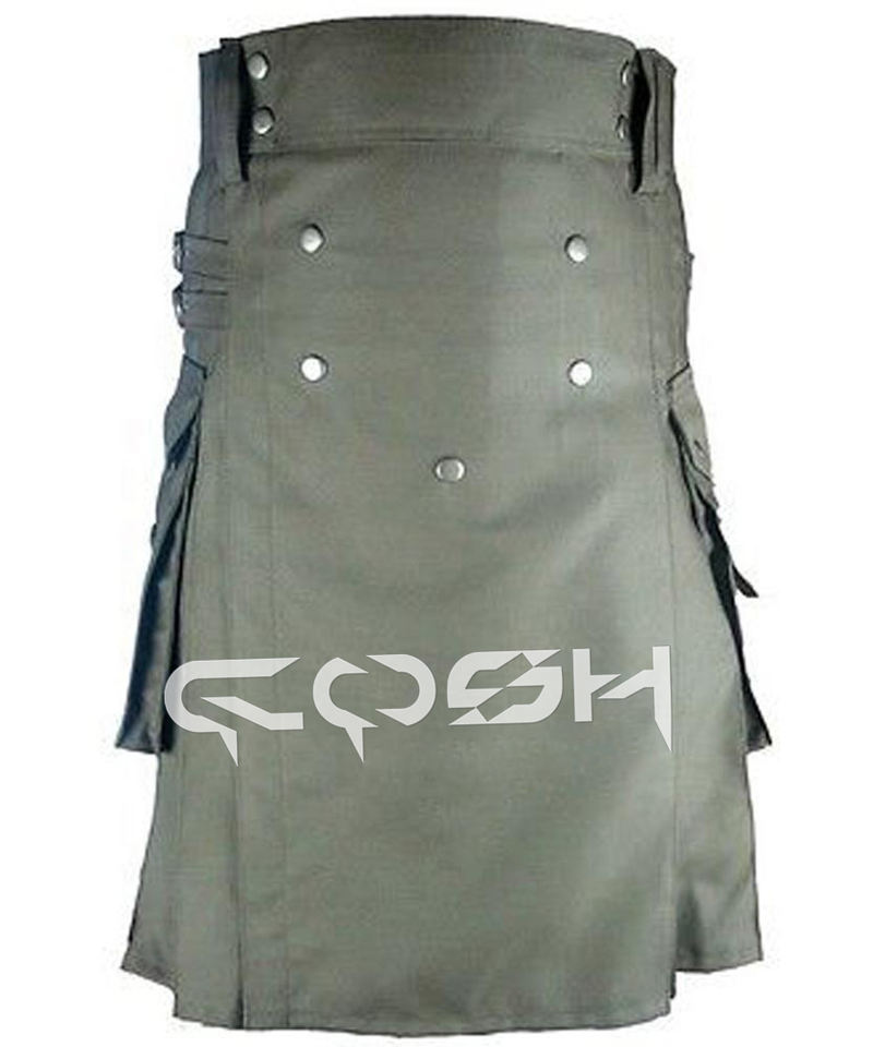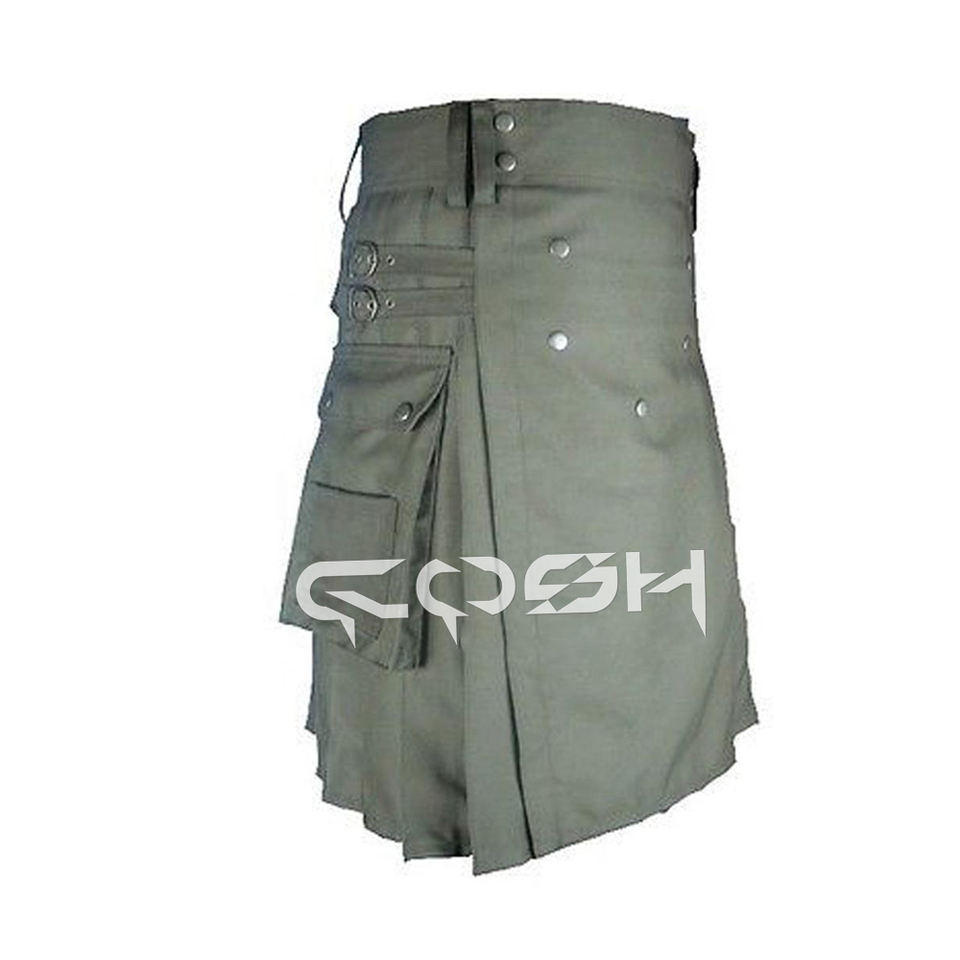 กระโปรงอเนกประสงค์สำหรับผู้ชายผ้าคอตตอนสีเทาทนทานพร้อมรายละเอียดที่ทันสมัย