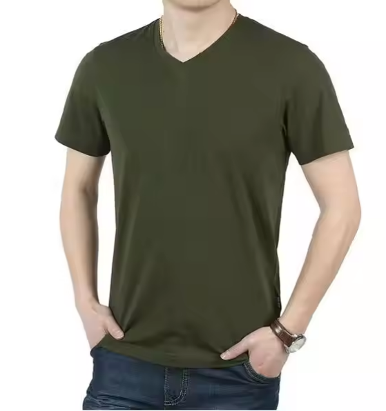 เสื้อยืดคอวีคอวีสำหรับผู้ชาย, เสื้อยืดคอวีสีพื้นแขนสั้น unisex 250 GSM ผ้าฝ้ายหนักว่างเปล่า