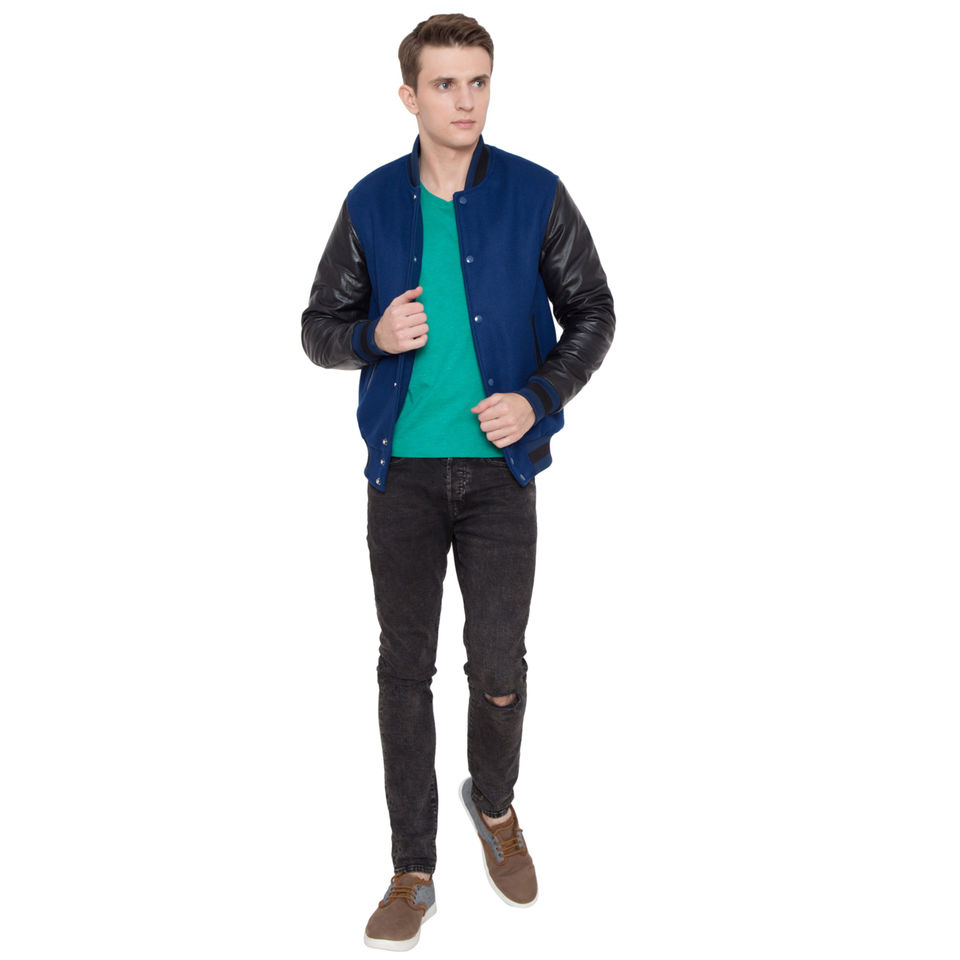 เสื้อแจ็กเก็ตทีมเบสบอลแขนเสื้อแจ็คเก็ตมีตัวอักษรหนังสีดำตัวสำหรับผู้ชายเสื้อถักด้วยซี่โครงเสื้อนอกทีมวิทยาลัยกำหนดได้เอง