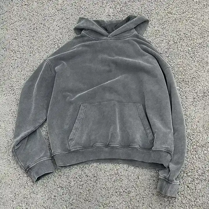 เสื้อฮู้ดดี้วินเทจผู้ชาย เสื้อสเวตเชิ้ตโอเวอร์ไซส์ เสื้อสเวตเชิ้ตคอกลมผ้าฝ้ายแบบสั่งทำพิเศษ ล้างสีแบบแอซิด
