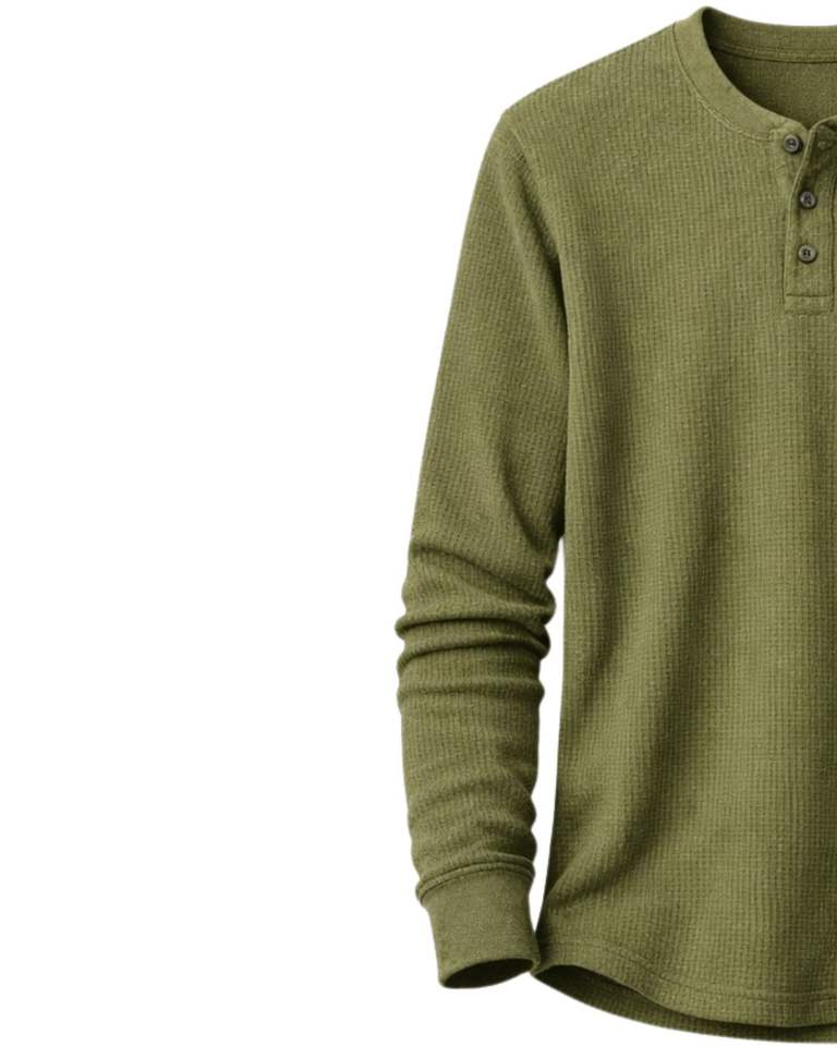 เสื้อยืดแขนยาวทรงเฮนลีย์ผ้าวาฟเฟิลสำหรับผู้ชาย สีเขียวมะกอก สวมใส่สบาย คอติดกระดุม เหมาะสำหรับฤดูหนาว ผ้าฝ้ายทรงเข้ารูป ระบายอากาศได้ดี