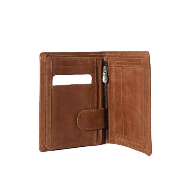 กระเป๋าสตางค์ผู้ชายทำจากหนังวัวแบบพับสองพับหนังแท้คลาสสิก