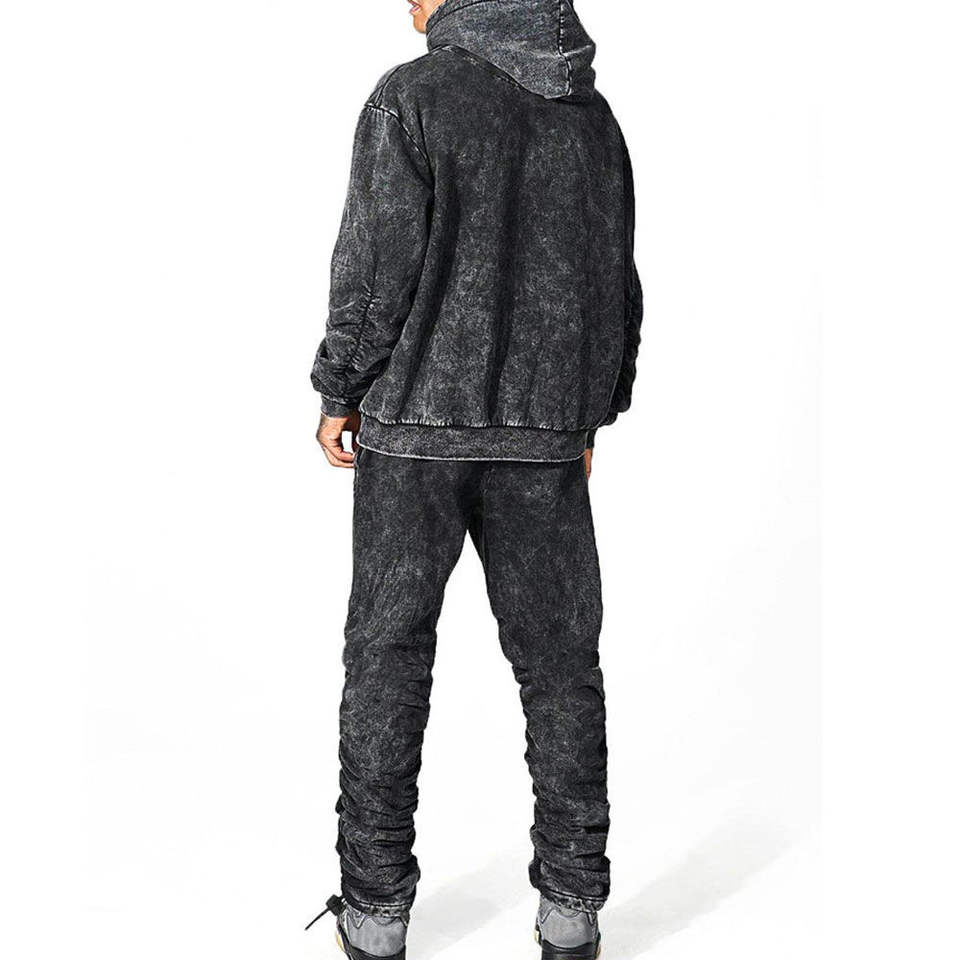 ชุดเซ็ตฮู้ดดี้ผ้าฝ้ายฟลีซสีชาร์โคลสำหรับผู้ชาย เสื้อฮู้ดดี้ทรงปกติ กางเกงทรงขาบาน สไตล์ลำลอง สตรีทแวร์ เป็นมิตรกับสิ่งแวดล้อม