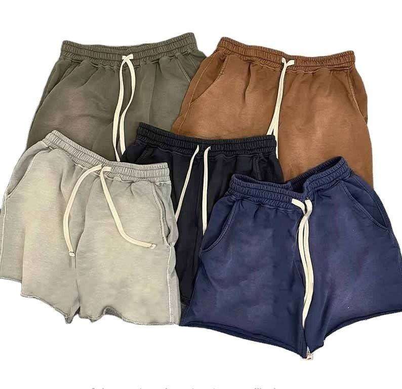 กางเกงขาสั้นผู้ชาย โพลีเอสเตอร์ 100% ผ้าซักแล้ว สีพื้น สไตล์ลำลอง ใส่สบายช่วงฤดูร้อน เอวยางยืด มีเชือกผูก สตรีทแวร์ แห้งเร็ว ระบายอากาศได้ดี