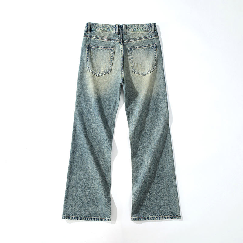 กางเกงยีนส์ผู้ชายทรงขาดๆ แบบวินเทจ เอวกลาง ผ้าเดนิมคุณภาพสูง ทนทาน สีพื้น สไตล์ฤดูใบไม้ร่วง ขาเดฟทรงหลวม