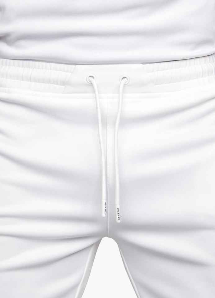 กางเกงขาสั้นกีฬาผู้ชาย สีขาว โพลีเอสเตอร์ 100% ผ้าเนื้อเดียว สำหรับออกกำลังกาย วิ่ง ระบายอากาศได้ดี