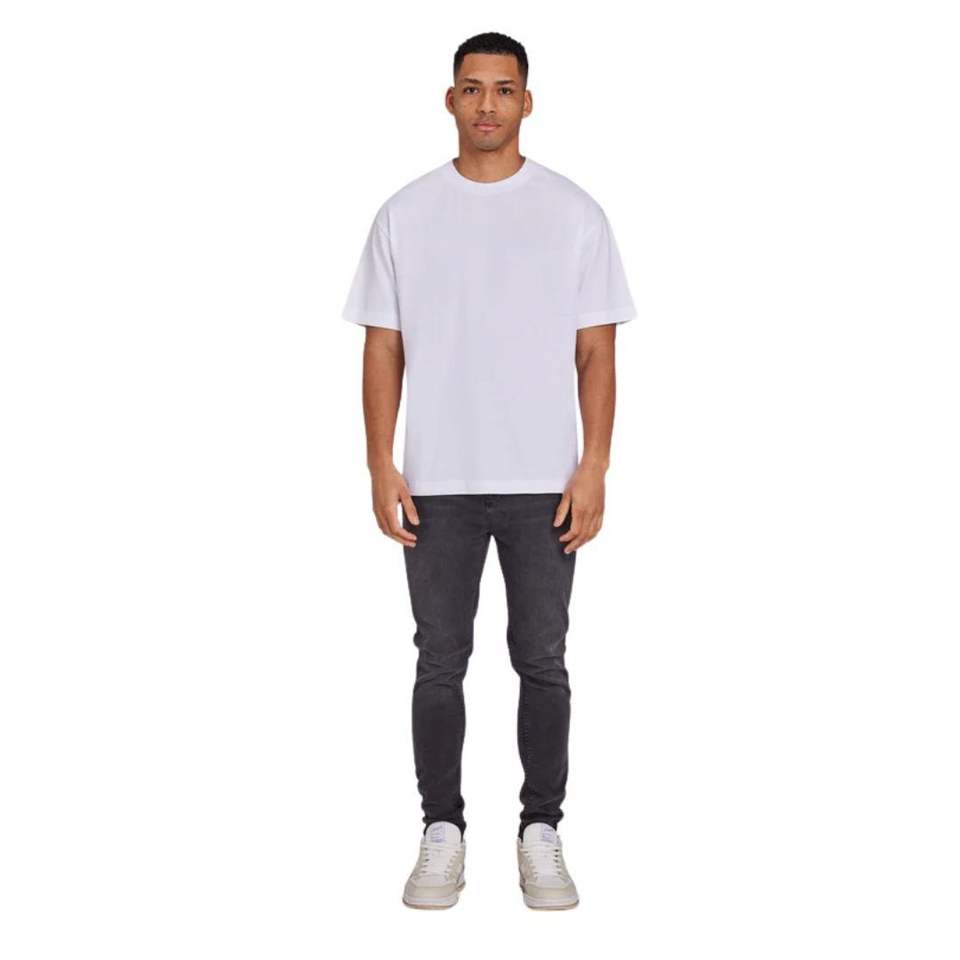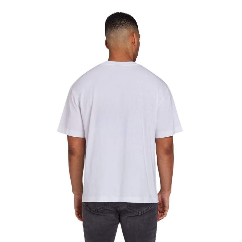 Mens White Oversized T-Shirt 100% Cotton 190 GSM Streetwear Staple Tee Printed Front Back Logo Drop Shoulder Relaxed Fit Shirt