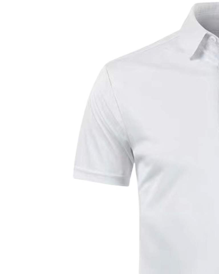 เสื้อโปโลสีขาวผู้ชาย ผ้าปิเก้ ปักโลโก้ตามสั่ง แขนสั้น ระบายอากาศดี ชุดยูนิฟอร์มบริษัท ส่งออก คุณภาพสูง