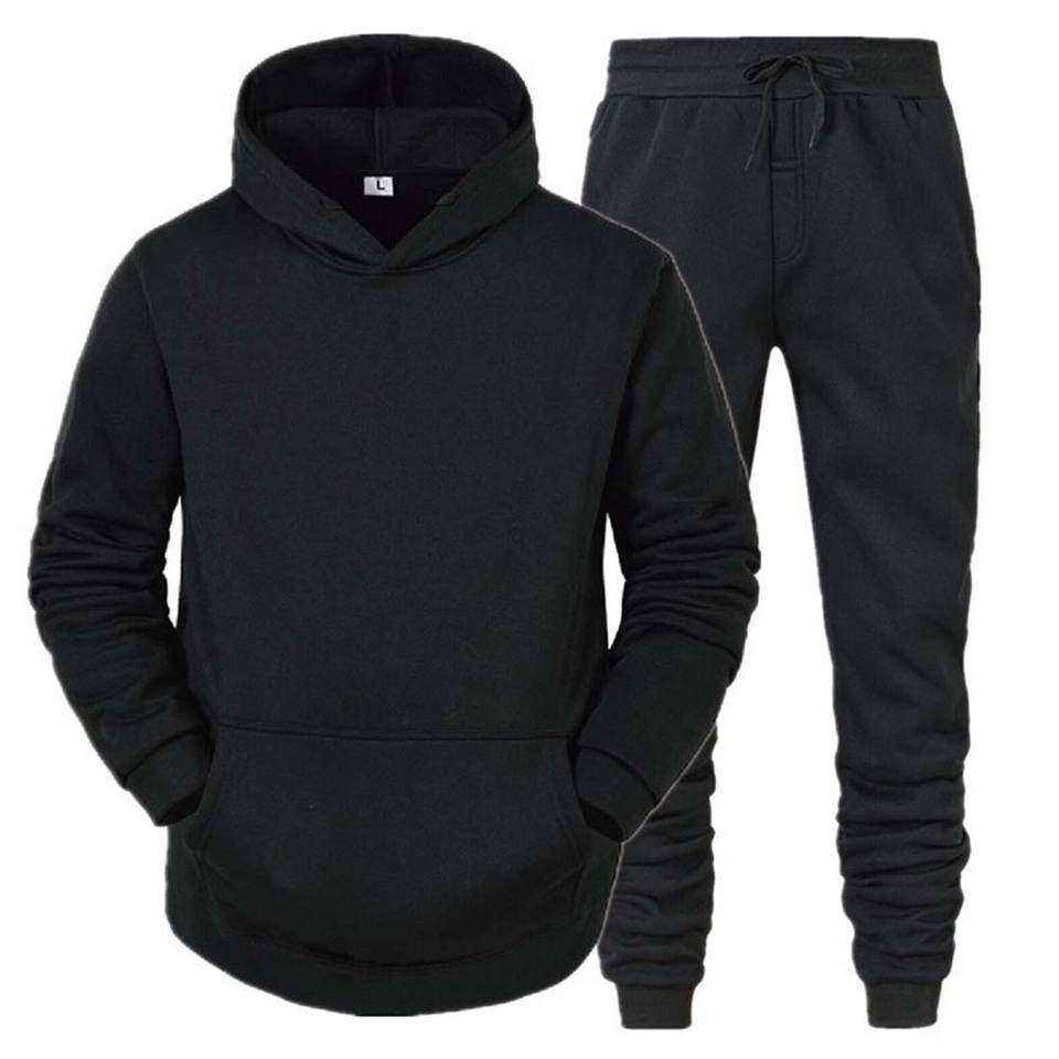 ชุดวอร์ม2ชิ้นมีกระเป๋าสำหรับผู้ชายและกางเกงมีฮู้ดแขนยาวสำหรับผู้หญิง