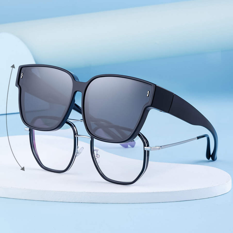 แว่นกันแดดโพลาไรซ์กรอบสี่เหลี่ยมแฟชั่นสำหรับผู้ชายและผู้หญิงพร้อมเลนส์ใส UV400กรอบ TR90สีดำ C2สีเทาเลนส์ฤดูร้อน2023