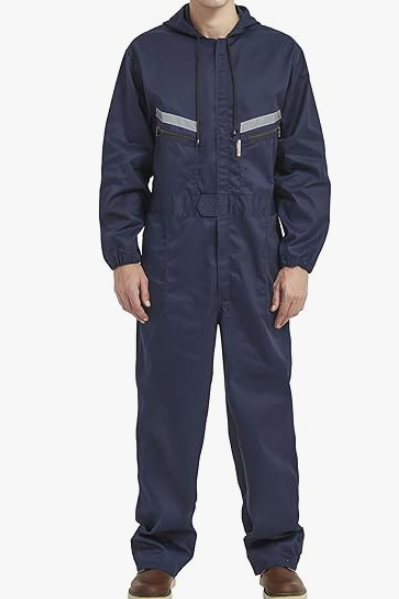 ชุดคลุมทำงานสำหรับช่างผู้ชายแบบมีฮู้ด แขนยาว สะท้อนแสง พร้อมซิป