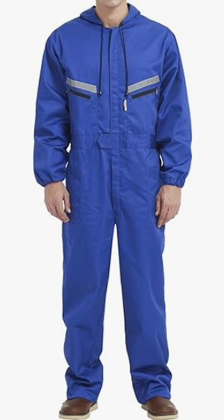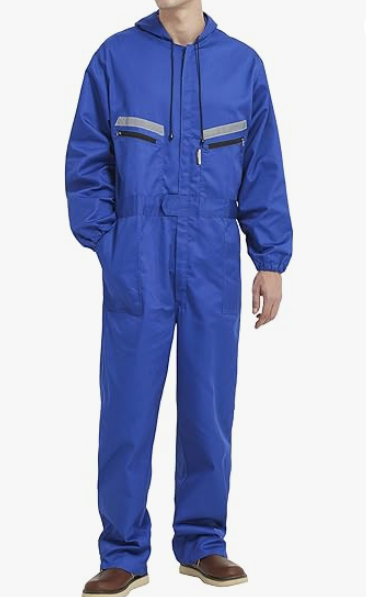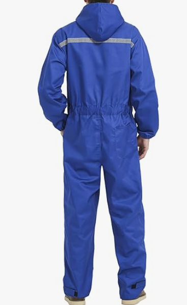 ชุดคลุมทำงานผู้ชายแบบมีฮู้ด ชุดจั๊มสูทช่าง แขนยาว สะท้อนแสง พร้อมซิป