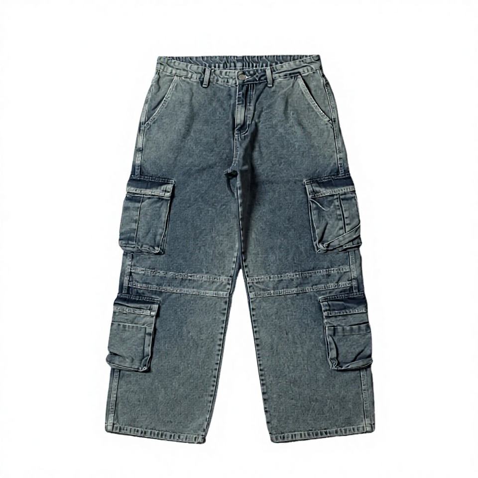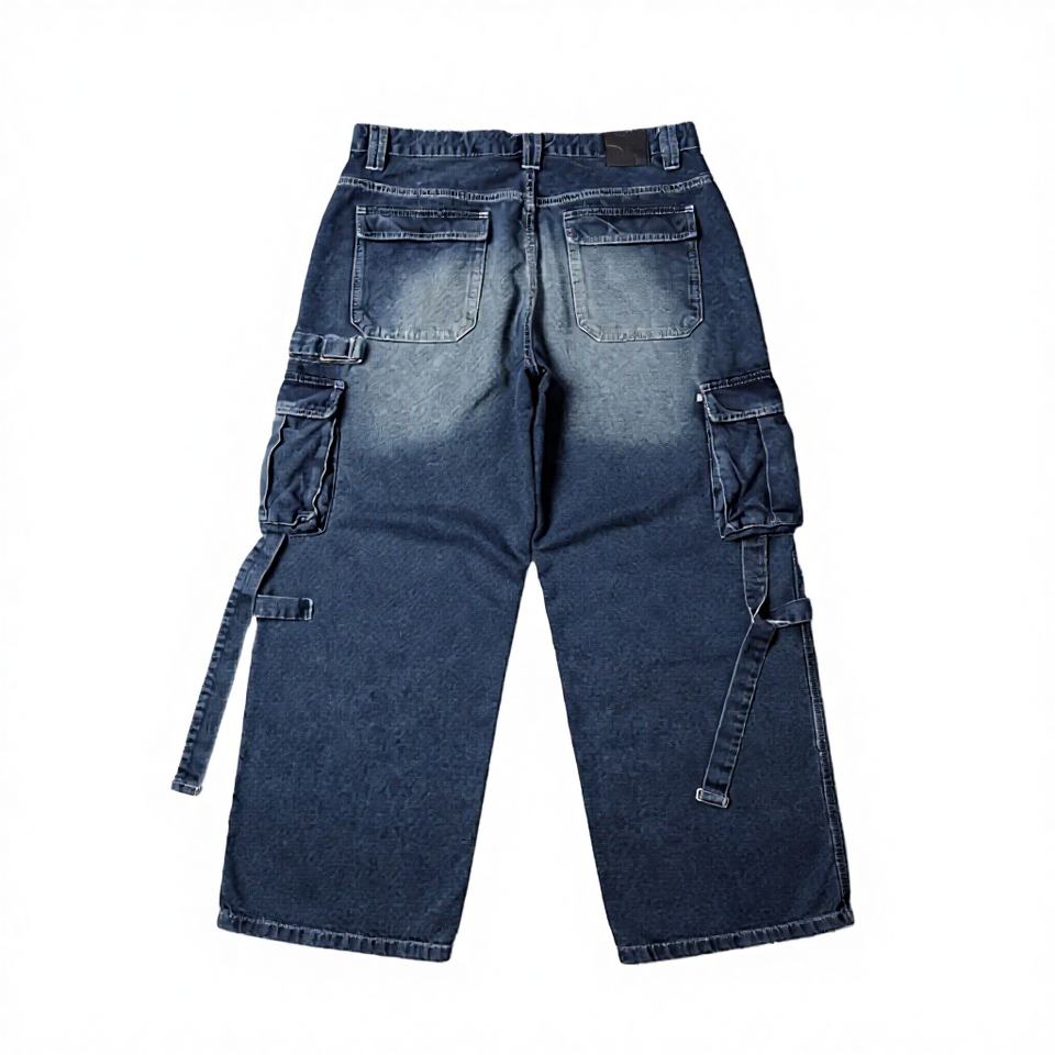 กางเกงยีนส์คาร์โก้ทรงหลวมสไตล์ฮิปฮอป Y2K สำหรับผู้ชาย เอวกลาง ทรงวินเทจ สีดำฟอก ขากว้าง ใส่สบาย เหมาะสำหรับฤดูใบไม้ร่วงและฤดูหนาว มีซิป