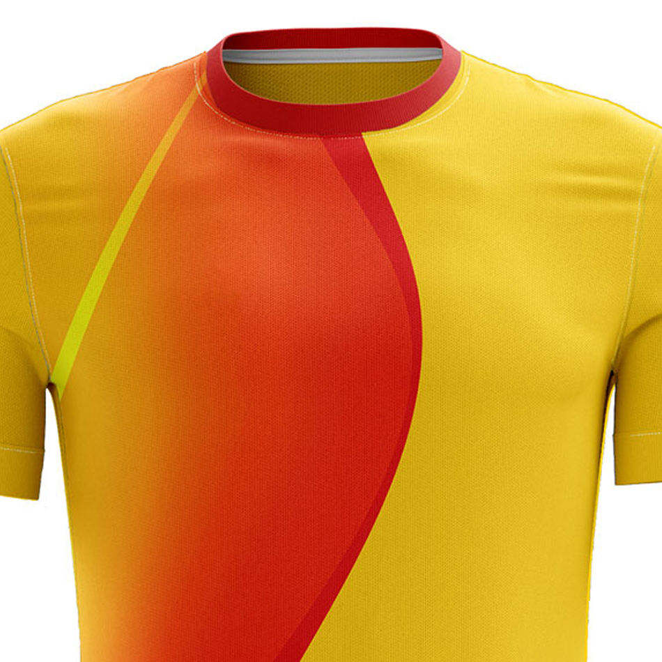 เสื้อยืดกีฬาไล่เฉดสีเหลืองแดงสำหรับผู้ชาย แห้งเร็ว เหมาะสำหรับการฝึกซ้อม