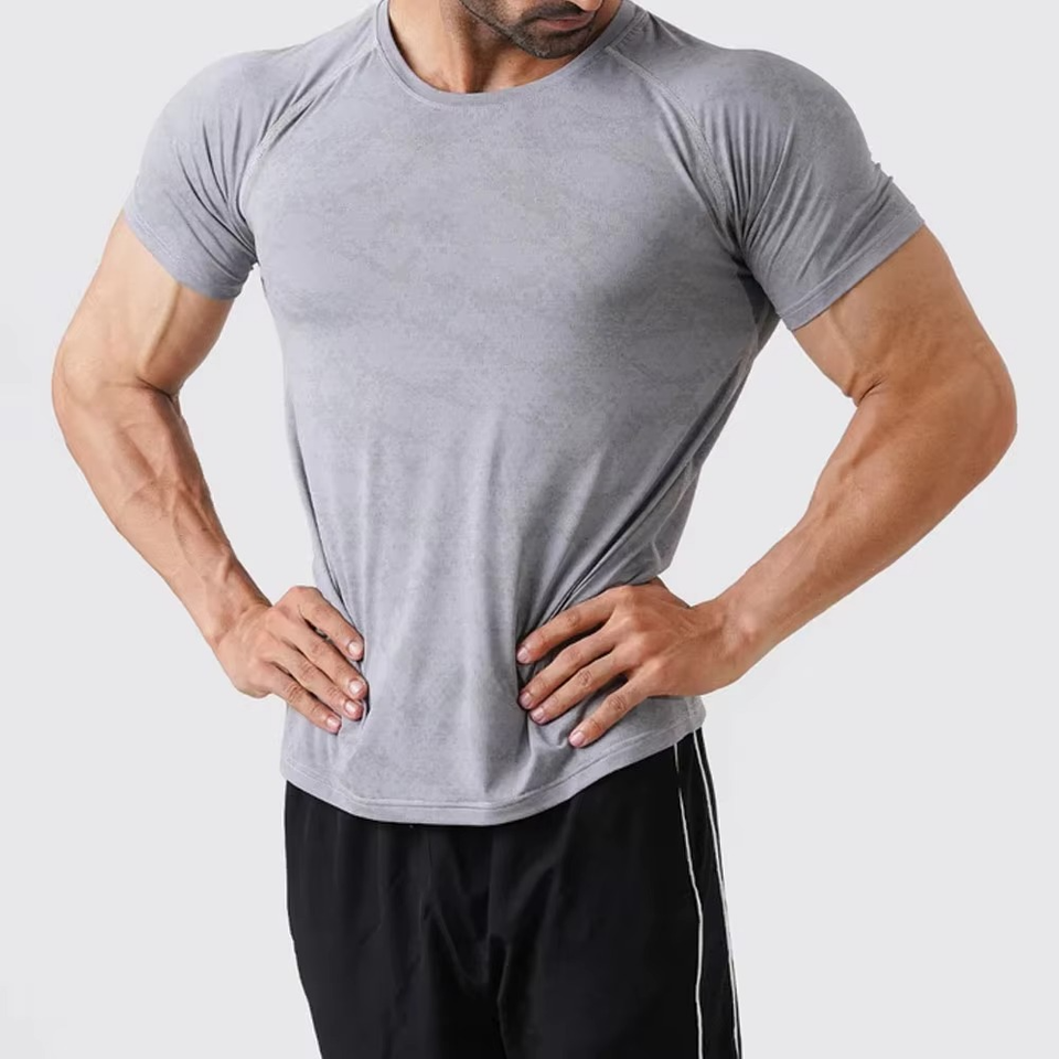 เสื้อยืดออกกำลังกายผู้ชาย แขนสั้น ผ้าเนื้อยืด ระบายอากาศดี เหมาะสำหรับฟิตเนส เพาะกาย และออกกำลังกายทั่วไป