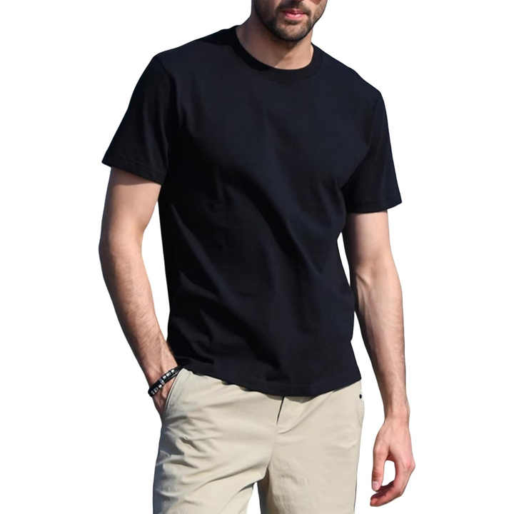 เสื้อยืดแขนสั้นสีพื้นคลาสสิกสำหรับผู้ชาย ผ้าเนื้อนุ่ม ทนทาน สวมใส่สบาย เหมาะสำหรับลำลอง สตรีทแวร์ แฟชั่นประจำวัน