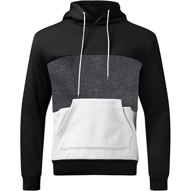 เสื้อฮู้ดบล็อกสีสำหรับผู้ชาย สีดำ เทา ขาว เสื้อสวมหัวเนื้อนุ่ม อุ่นสบาย สไตล์ลำลอง แขนยาว ใส่สบาย