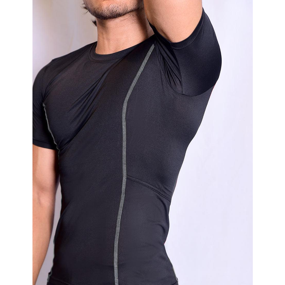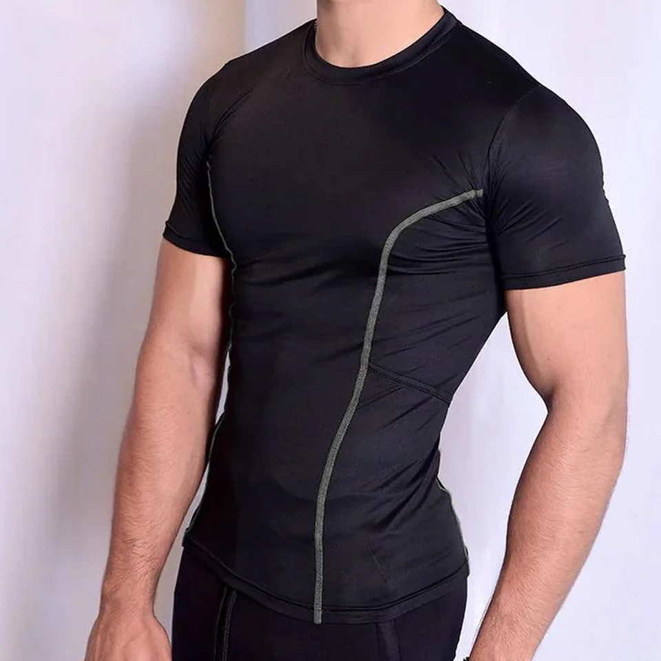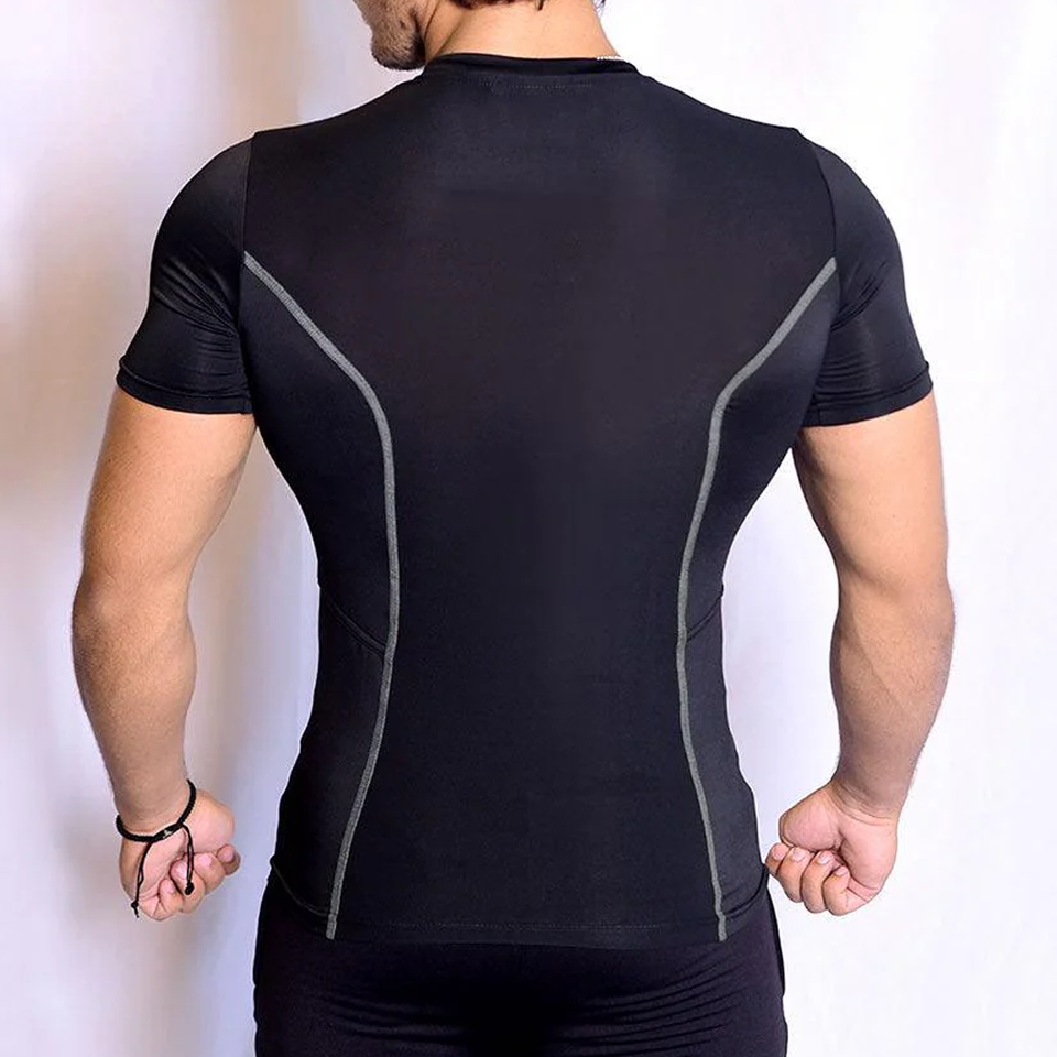 Mens compression workout shirt short sleeve breathable stretch base layer gym top wear