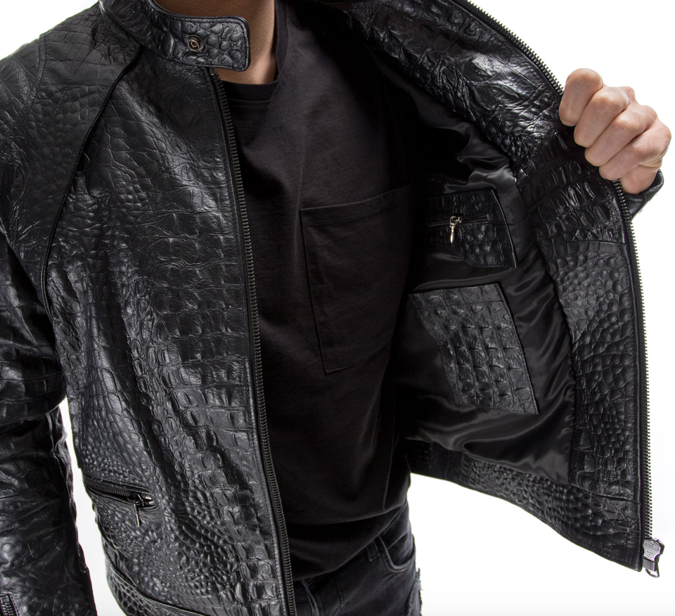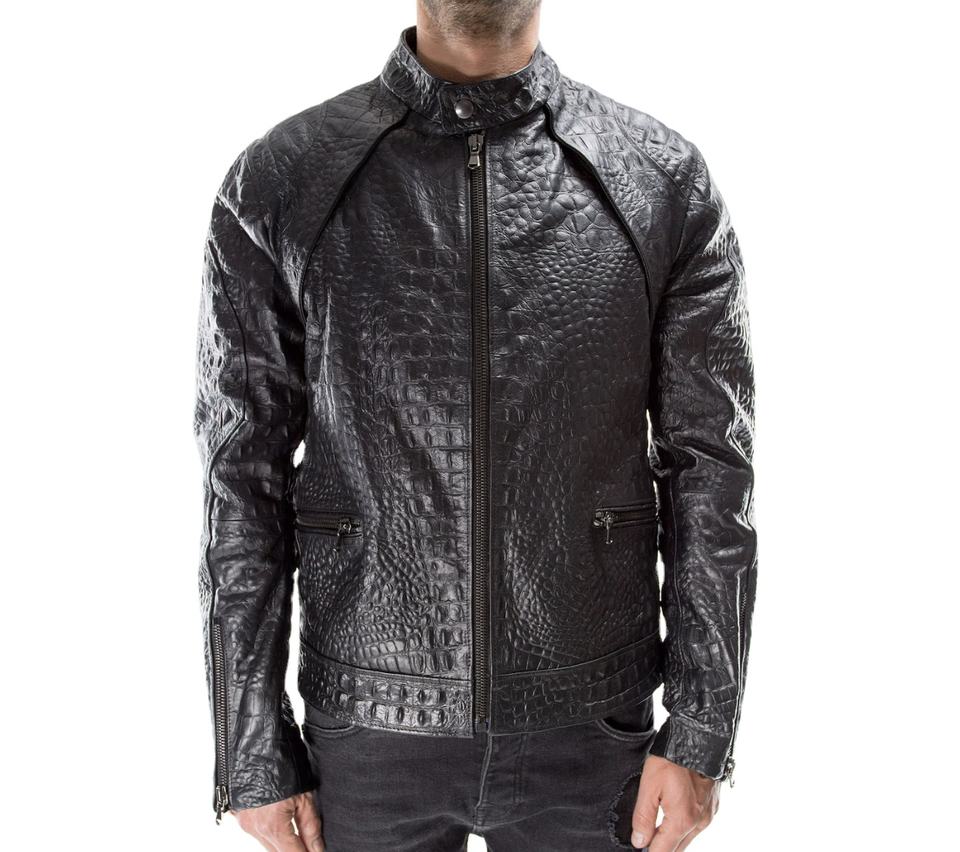 แจ็กเก็ตหนังจระเข้นูนสำหรับผู้ชายแจ็คเก็ตหนังมีซิปด้านหน้าสำหรับนักขี่จักรยาน