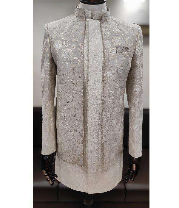 ชุดเสื้อเชอร์วานีแบบอินโดเวสเทิร์นสำหรับผู้ชาย ตัดเย็บจากผ้าแจ็คการ์ดพร้อมงานปัก เหมาะสำหรับโอกาสพิเศษ