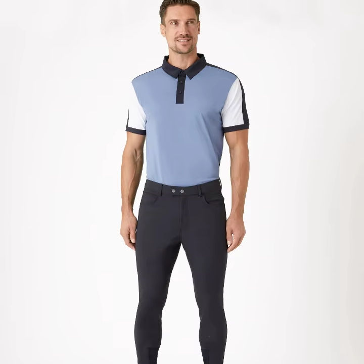 กางเกงขี่ม้าสำหรับผู้ชายเนื้อผ้าระบายอากาศเข้ารูปตะเข็บเสริมประสิทธิภาพสูงดีไซน์ทรงสลิมฟิต