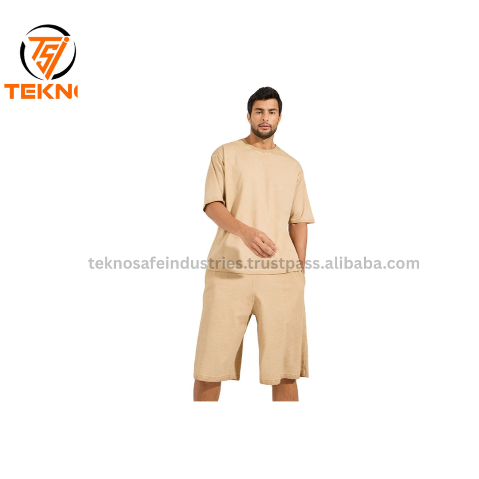 ชุดสั้นฤดูร้อนสำหรับผู้ชายกับเสื้อและกางเกงขาสั้นที่เข้ากันเหมาะสำหรับวันชายหาดพักผ่อนหรือออกนอกบ้านสบายๆในสภาพอากาศอบอุ่น