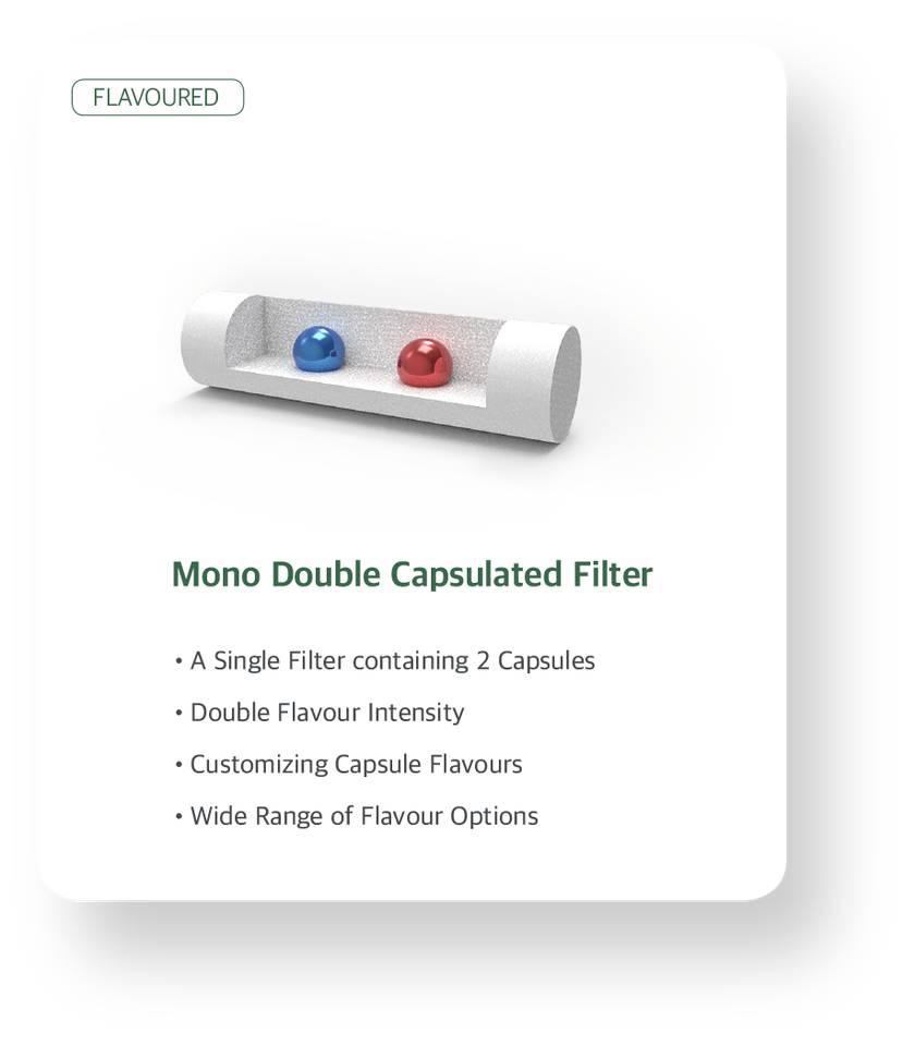 เมนทอล, ป๊อปฟิลเตอร์, คลิกฟิลเตอร์, เบิร์สต์ฟิลเตอร์, ครัชฟิลเตอร์, แคปซูลฟิลเตอร์, โคเรีย ท็อบาโก้ ฟิลเตอร์, โมโน ดับเบิ้ล แคปซูล ฟิลเตอร์