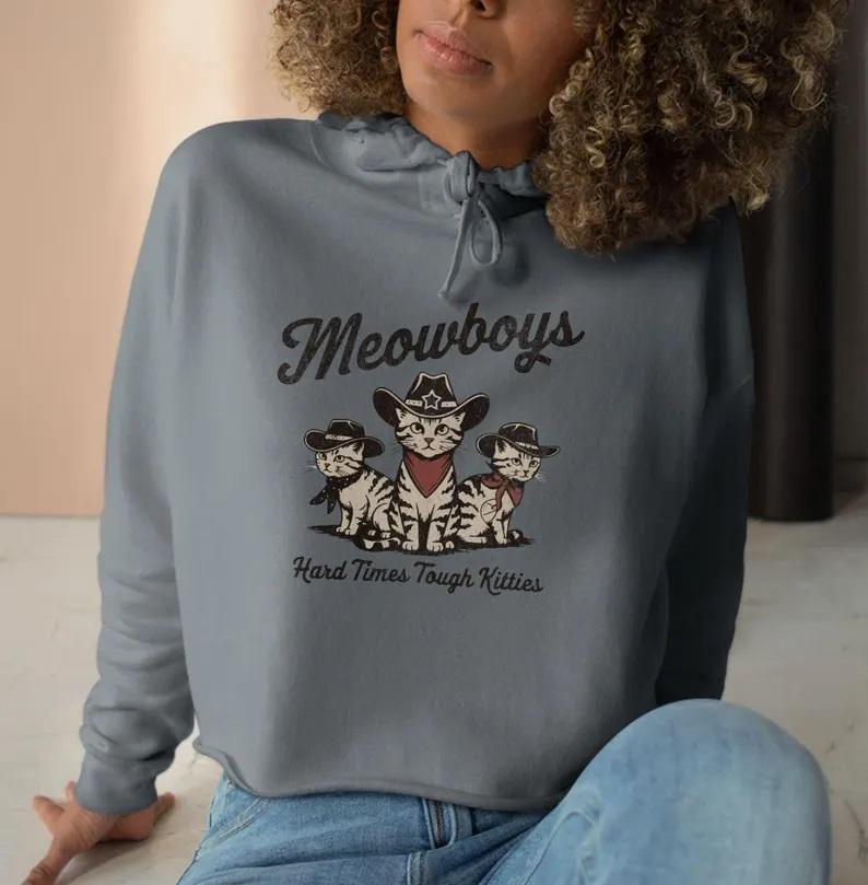 เสื้อฮู้ดครอปผู้หญิง Meowboys - ทันสมัยและสวมใส่สบาย ผลิตจากผ้าฝ้าย 100% ODM เสื้อผ้าสำหรับคนรักแมว พร้อมตัวเลือกโลโก้ด้านหน้า