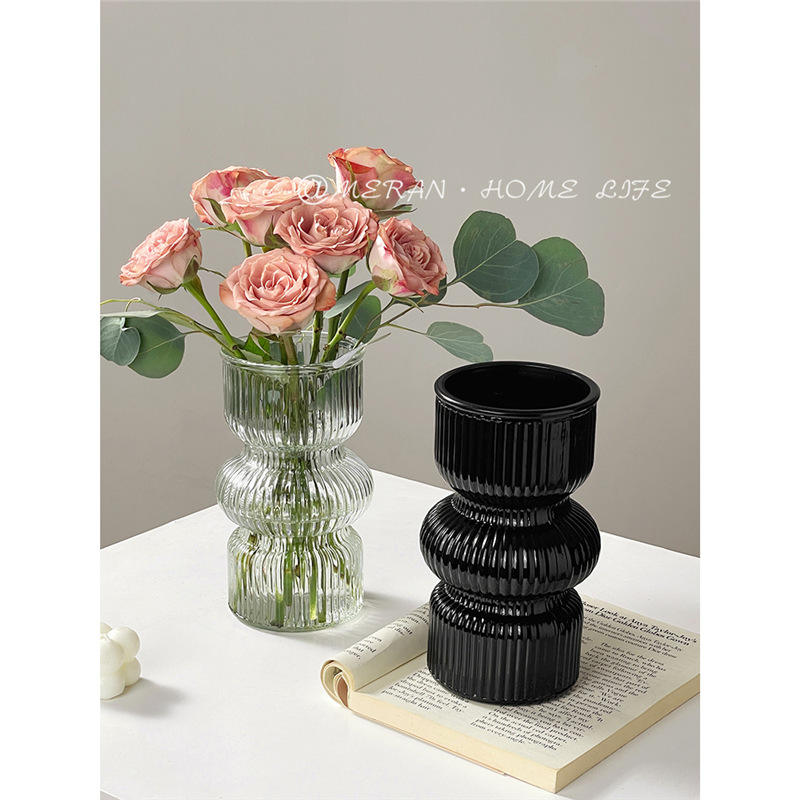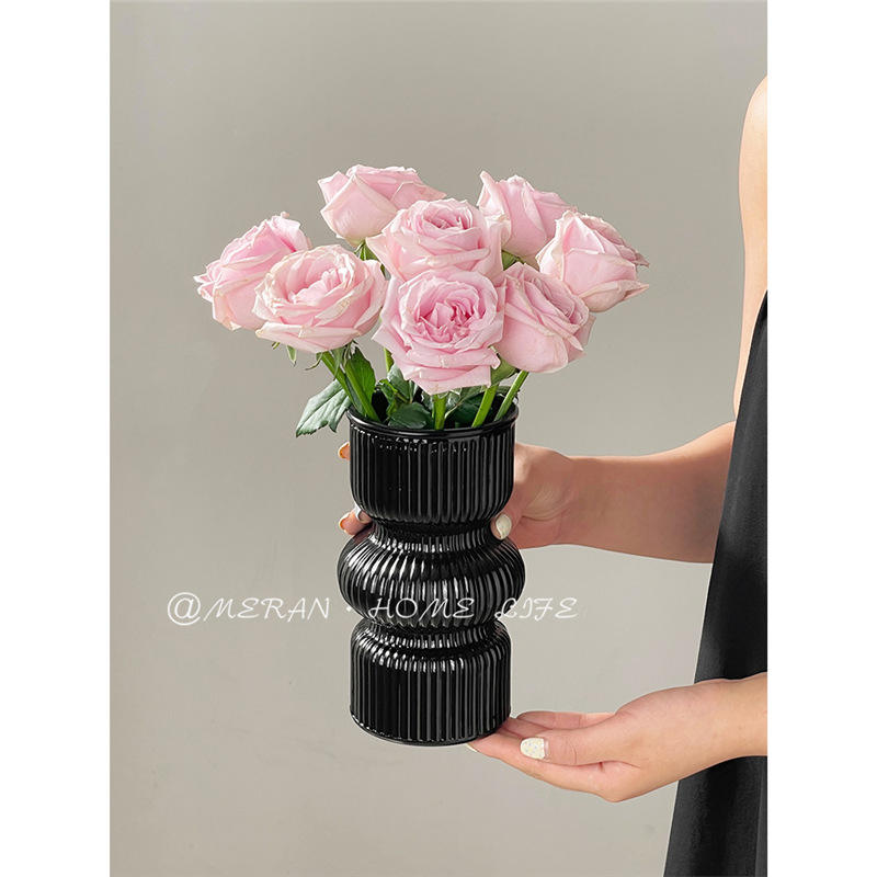 แจกันแก้วสไตล์ฝรั่งเศสสีดำสำหรับตกแต่งบ้าน ห้องนั่งเล่น และโต๊ะอาหาร