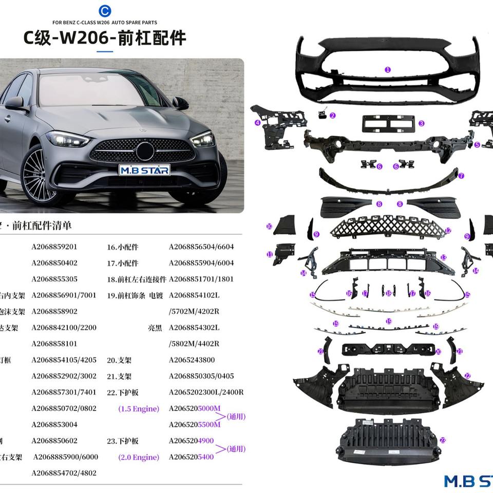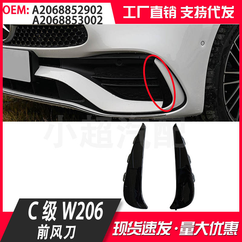 เมอร์เซเดส-เบนซ์ ซี-คลาส สปอร์ต W206 คาร์บอนไฟเบอร์ ฟรอนท์ลิป คานาร์ดส์ A2068852902 A2068853002 แถบตกแต่งกันชนสีดำ