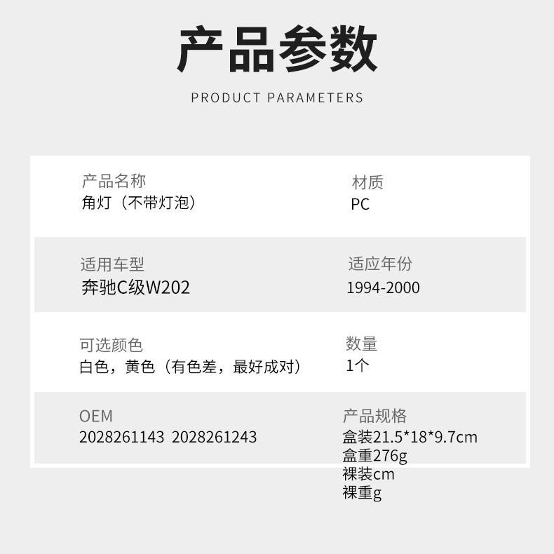 ไฟเลี้ยวข้างรถยนต์ Mercedes-Benz C-Class W202 แบบฮาโลเจน วัสดุ PC ปี 1994-2000 อะไหล่ทดแทน