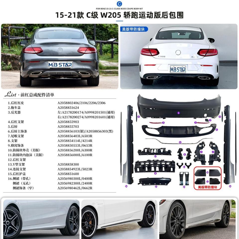 กันชนหลัง Mercedes-Benz C-Class W205 Coupe ปี 2015-2021 รุ่น A2058802406