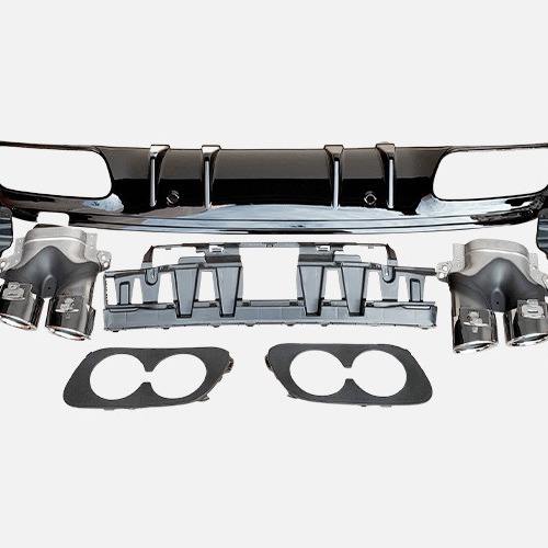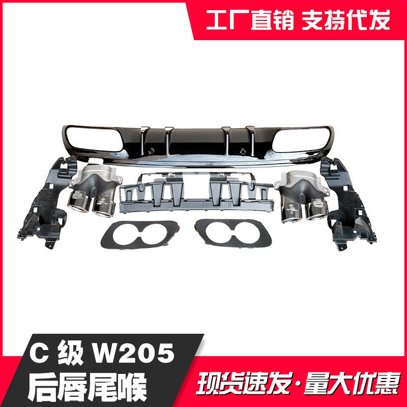 ชุดแต่งดิฟฟิวเซอร์หลังพร้อมท่อไอเสียสีดำเงิน สแตนเลส สำหรับรถยนต์เมอร์เซเดส-เบนซ์ ซี-คลาส W205 ปี 2015-2020 ชุดอัพเกรด