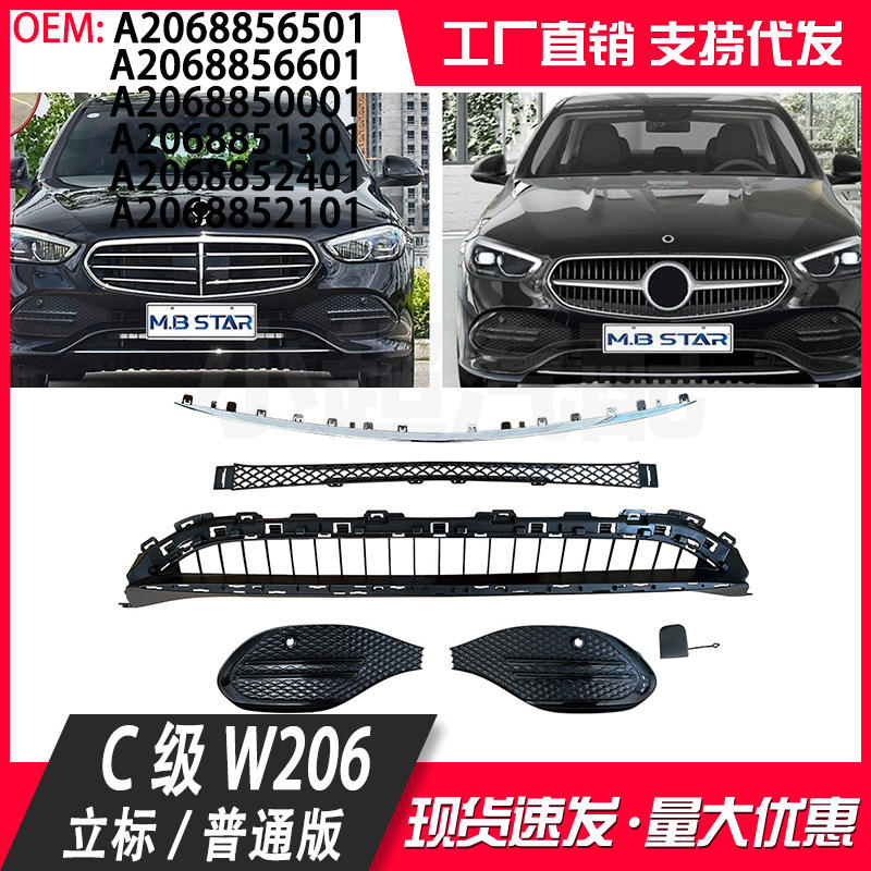 Mercedes-Benz C-Class W206 Front Bumper Fog Light Frame Lower Grille A2068856501 ABS Replacement Part