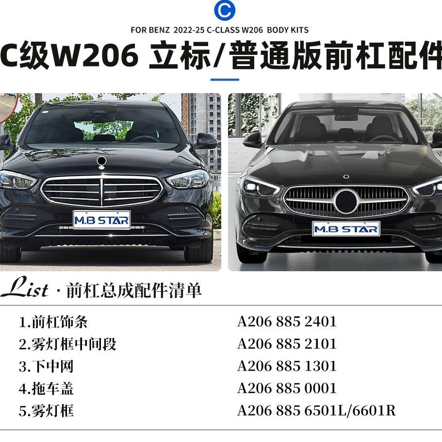 แถบตกแต่งกันชนหน้าเมอร์เซเดส-เบนซ์ A2068852401 แบบหนีบ สำหรับเปลี่ยนใส่ C-Class C200 206 รุ่นมาตรฐาน