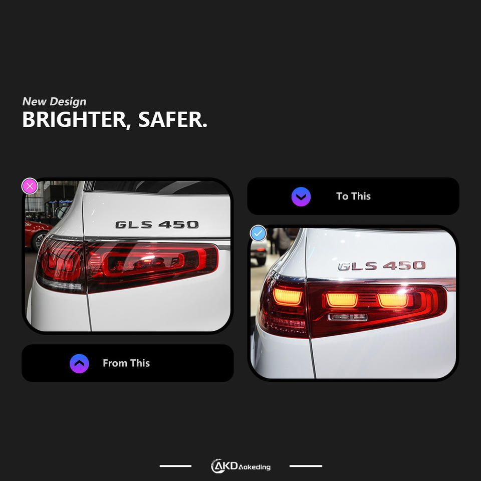 Mercedes-Benz GLS ชุดไฟท้าย167ไฟเบรค LED แบบไดนามิกใหม่มีเลนส์สีแดงใสใช้วัสดุ ABS แรงดัน12V