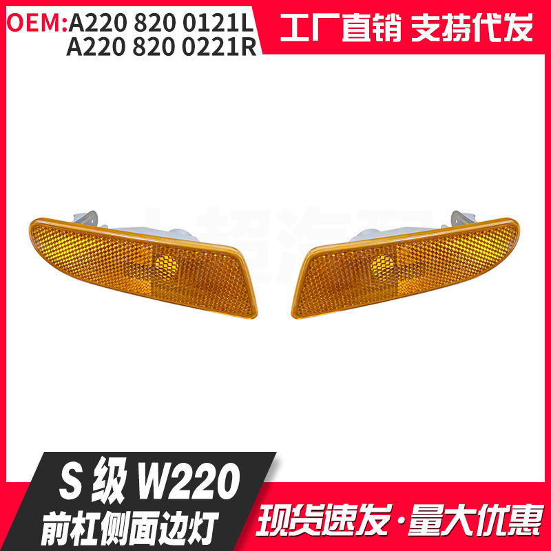 ไฟเลี้ยวข้างรถเมอร์เซเดส-เบนซ์ เอส-คลาส W220 รุ่น 2208200121L 2208200221R สีเหลืองอำพัน สำหรับกันชนหน้า