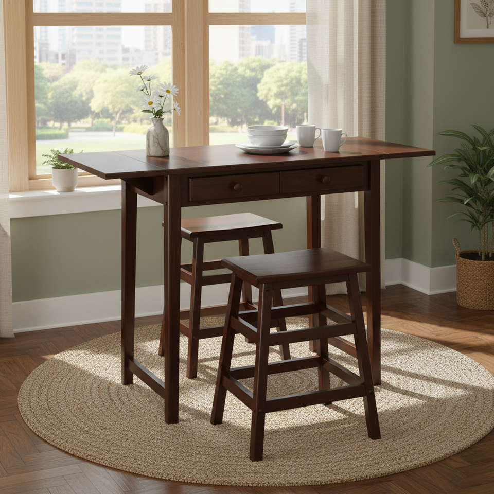 โต๊ะรับประทานอาหารเมอร์เซอร์แบบดับเบิ้ลดรอปลีฟพร้อมเก้าอี้ 2 ตัว รุ่น D0100HHCG8U