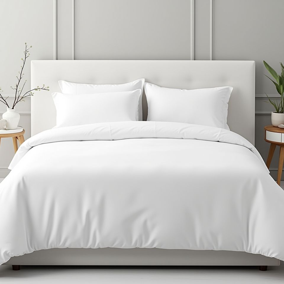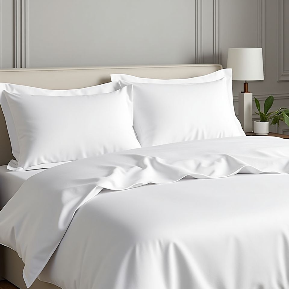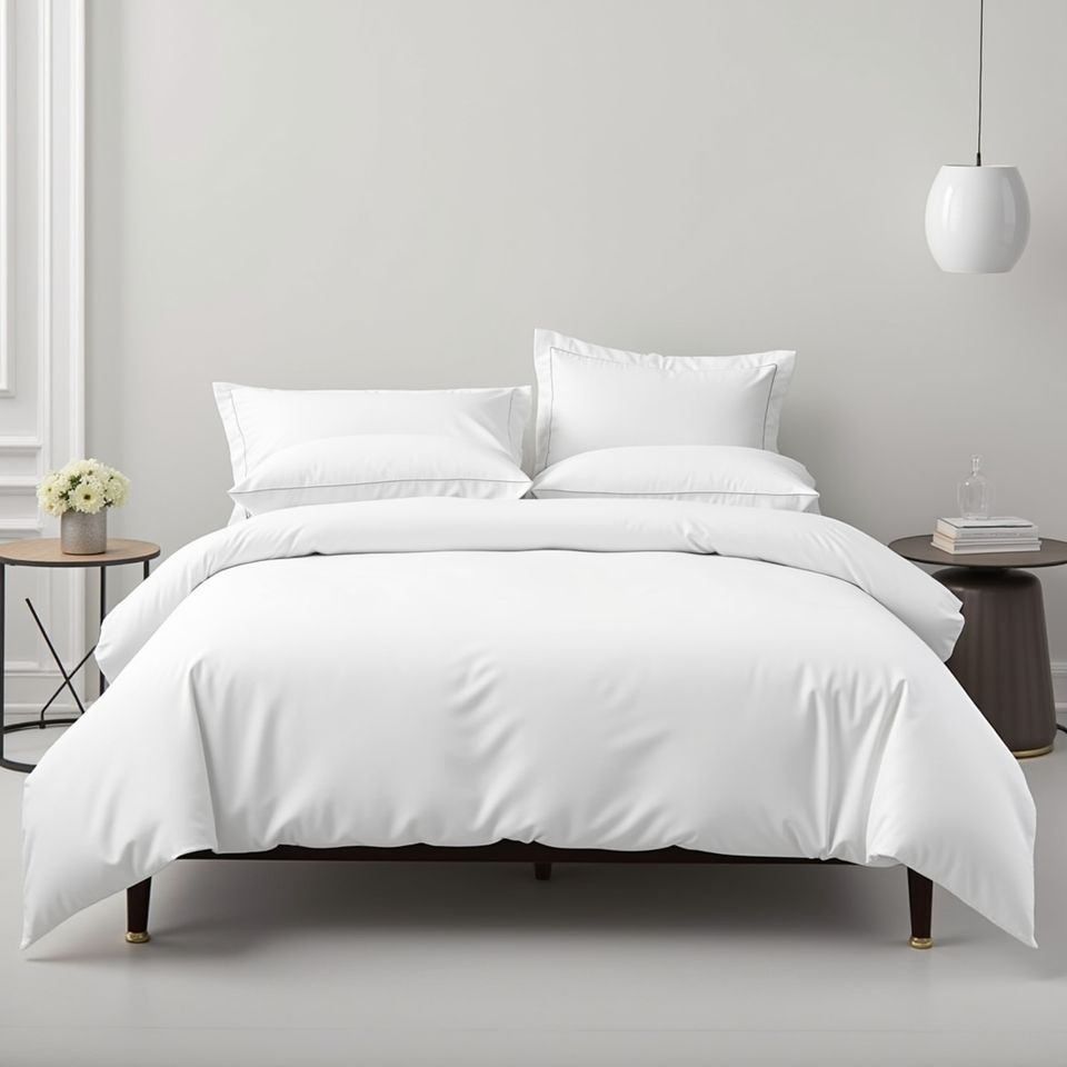 ผ้าปูที่นอนโรงแรมคุณภาพสูง ผลิตจากผ้าฝ้ายเมอร์เซอไรซ์ 100% ความหนาแน่น 250 เส้นด้าย 760 กรัมต่อตารางเมตร ดีไซน์ทันสมัย ใช้ได้ทุกฤดู เนื้อผ้าซาตินบริสุทธิ์ ผิวสัมผัสเรียบเนียน ระบายอากาศได้ดี