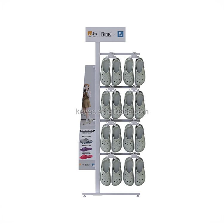 การค้าขายสินค้าลวดตาข่ายรองเท้า Crocs ชั้นวางจอแสดงผลติดตั้งฟรียืนรองเท้าโลหะแขวนรองเท้าแตะยืนแสดง