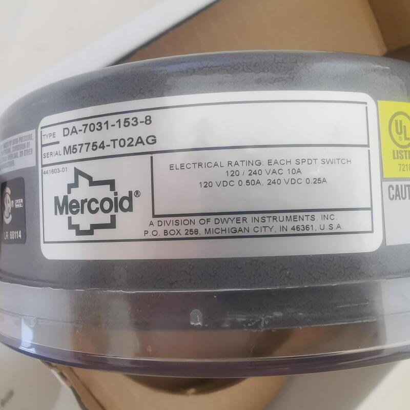 สวิตช์แรงดันเมอร์โคอิด Da-7031-153-8 G1/2 อะไหล่ควบคุมอุตสาหกรรมทองเหลืองสำหรับการตรวจสอบอากาศ Ip54