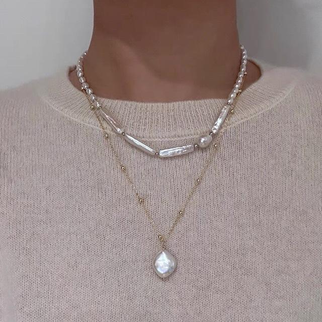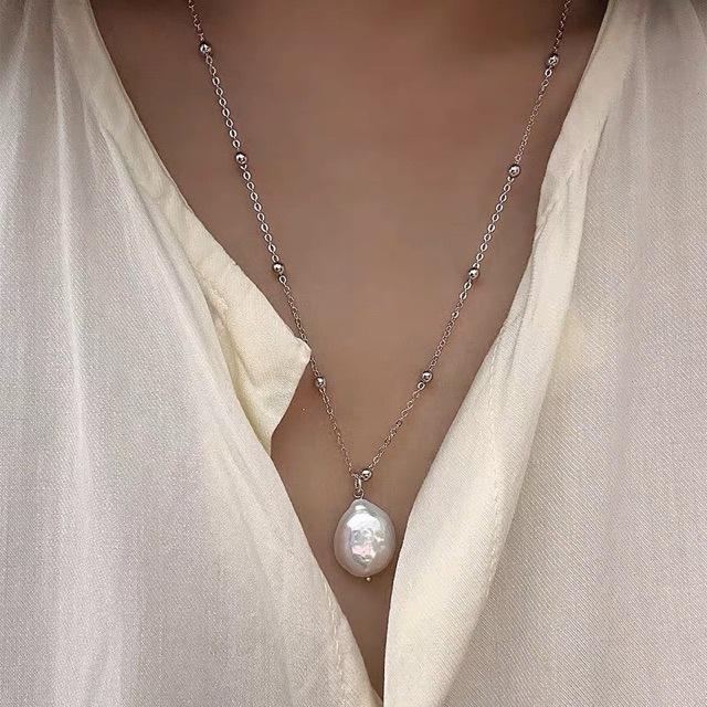 สร้อยคอมุกบาร็อคธรรมชาติทรงหยดน้ำ ดีไซน์เรียบหรู สไตล์เรียบง่าย สร้อยคอคล้องคอหุ้มด้วยทอง 14k ดีไซน์สง่างาม