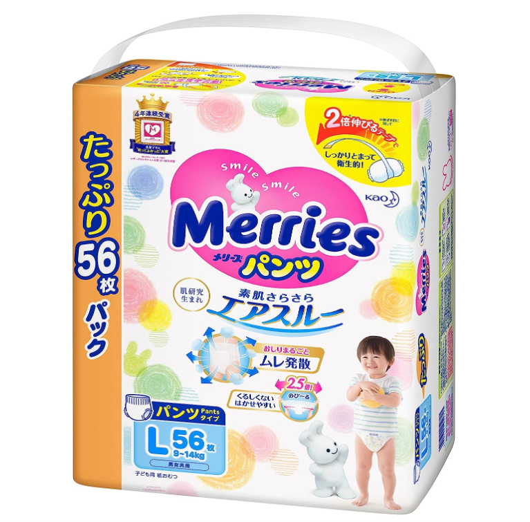 Merries ผ้าอ้อมเด็กแบบกางเกงไซส์ S ผ้าอ้อมเด็กญี่ปุ่นแบรนด์ญี่ปุ่นที่ดีที่สุด