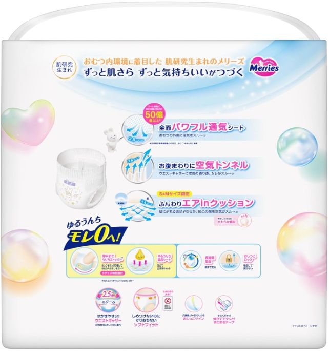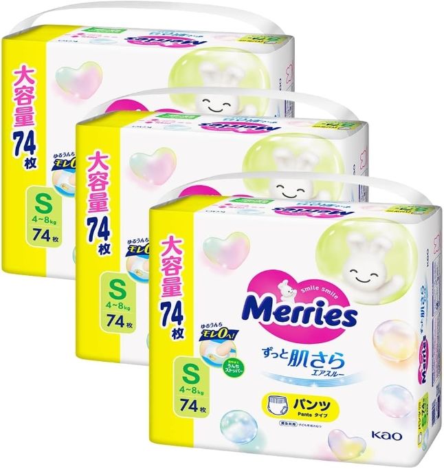 Merries Jumbo Pack Disposable Tape Diapers Economy Size S Soft Breathable Printed Japan Babies 4kg/8kg 74pcs/3packs Non-woven