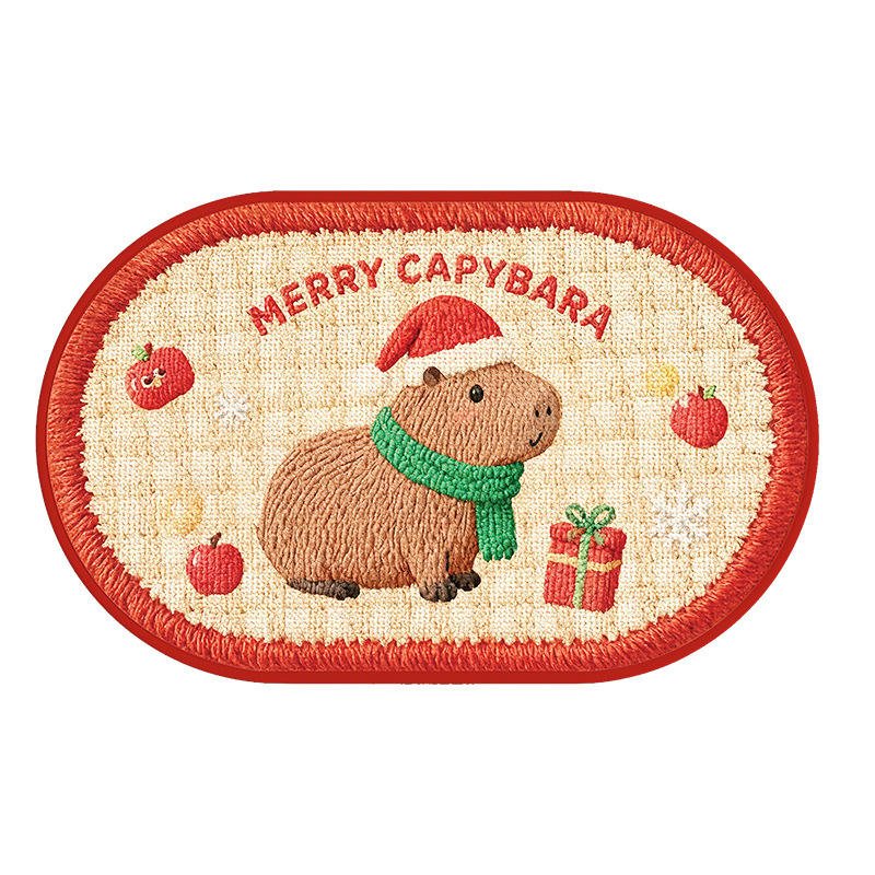 เมอร์รี่ คาปิบาร่า คริสต์มาส แบธแมท รูปวงรี ใยโพลีเอสเตอร์ กันลื่น ดูดซับน้ำได้ ตกแต่งบ้าน พรม