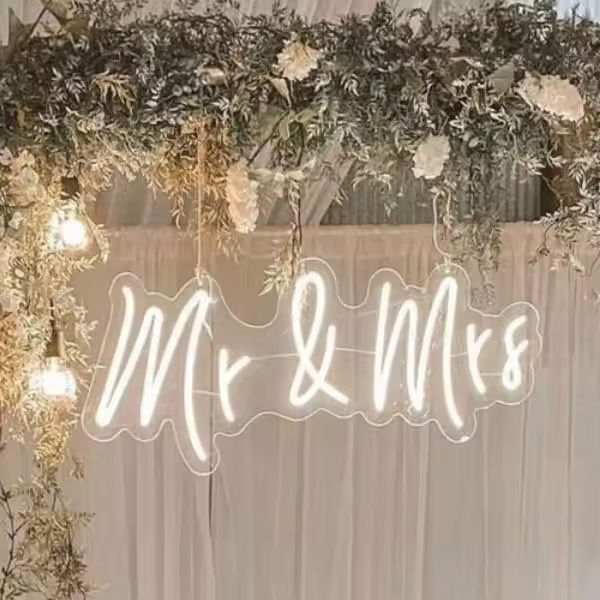 ชื่อผลิตภัณฑ์:ป้ายไฟนีออน LED แบบกำหนดชื่อได้เองสำหรับตกแต่งงานแต่งงาน