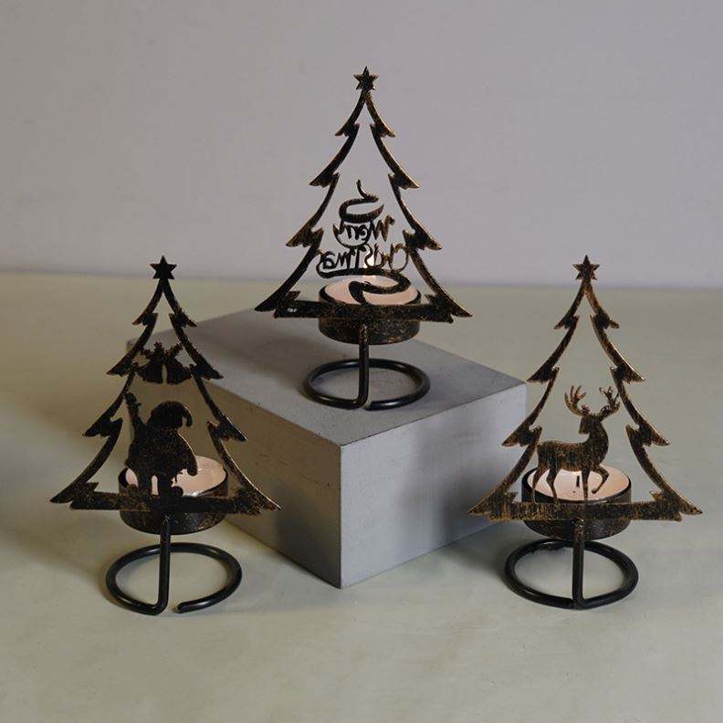 เชิงเทียนโลหะสุขสันต์วันคริสต์มาสเชิงเทียนสำหรับบ้านสไตล์วินเทจโรแมนติกที่ละเอียดอ่อน