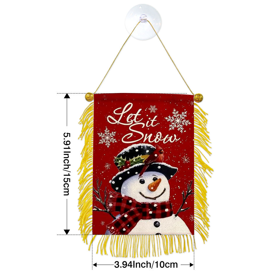 ธงแขวนรถรูปมนุษย์หิมะและเกล็ดหิมะขนาดเล็กสำหรับวันคริสต์มาส พร้อมถ้วยดูดติดกระจก