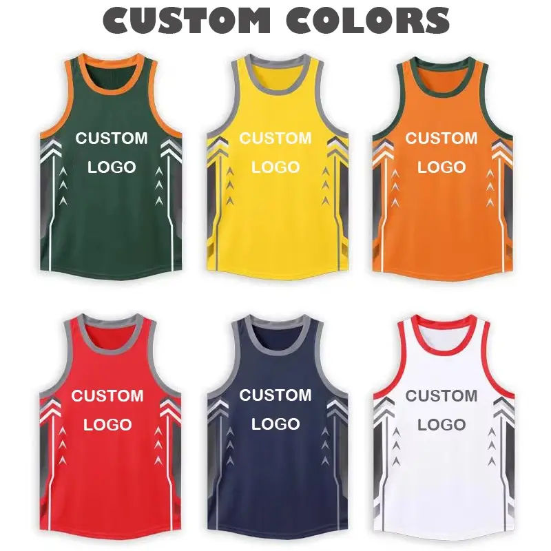 เสื้อบาสเก็ตบอลตาข่ายระบายอากาศได้ดี พิมพ์ลายแบบรีดร้อนตามสั่ง โพลีเอสเตอร์ 100% แห้งเร็ว เสื้อแขนกุดสำหรับเล่นกลางแจ้ง